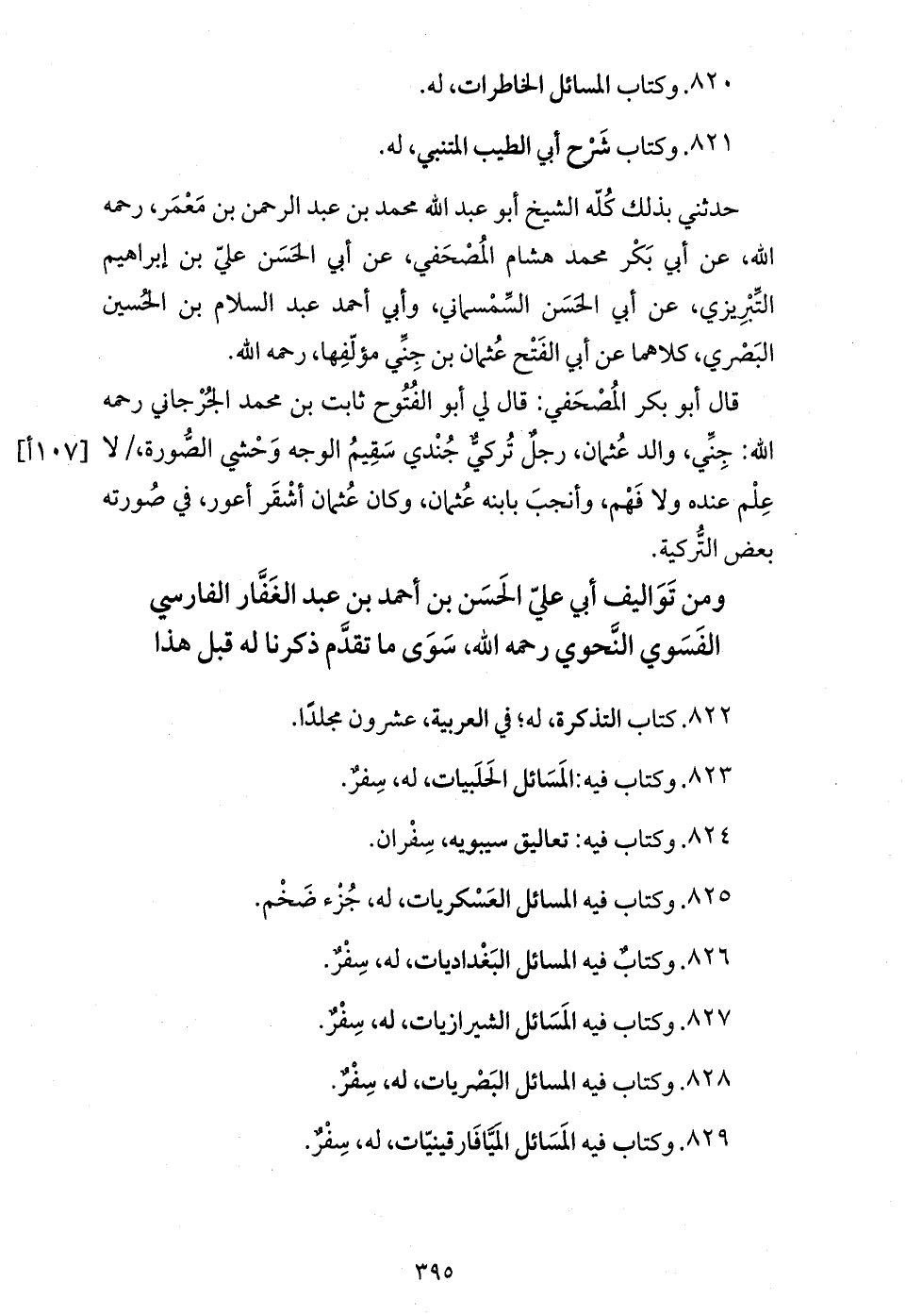 ومن تواليف أبي عليّ الحسن بن أحمد بن عبد الغفّار الفارسي الفسوي النّحوي رحمه الله،