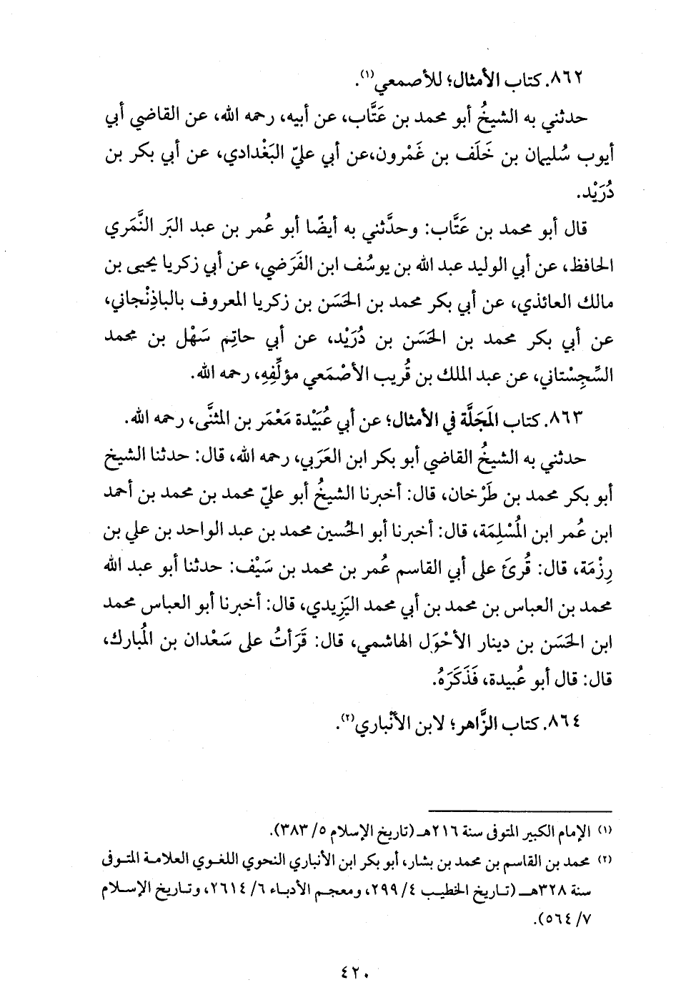 (¬2) محمد بن القاسم بن محمد بن بشار، أبو بكر ابن الأنباري النحوي اللغوي العلامة المتوفى سنة 328 هـ (تاريخ الخطيب 4/ 299، ومعجم الأدباء 6/ 2614، وتاريخ الإسلام 7/ 564).