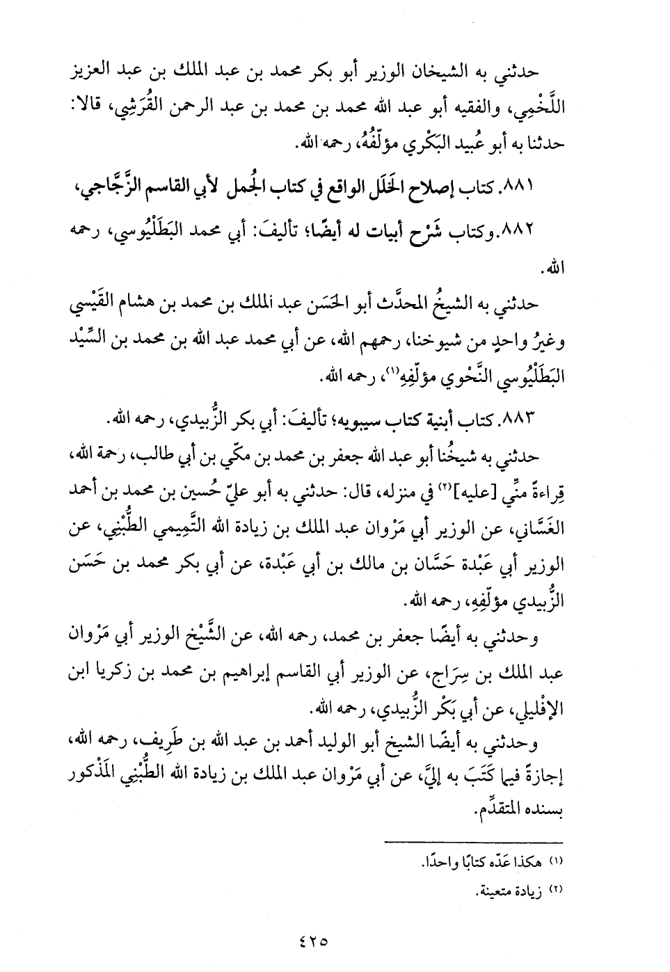 حدثني به الشيخ المحدّث أبو الحسن عبد الملك بن محمد بن هشام القيسي وغير واحد من شيوخنا، رحمهم الله، عن أبي محمد عبد الله بن محمد بن السّيد البطليوسي النّحوي مؤلّفه (¬1)، رحمه الله.
