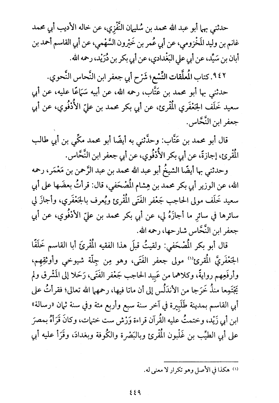 قال أبو محمد بن عتّاب: وحدّثني به أيضا أبو محمد مكّي بن أبي طالب المقرئ، إجازة، عن أبي بكر الأدفوي، عن أبي جعفر ابن النّحّاس.