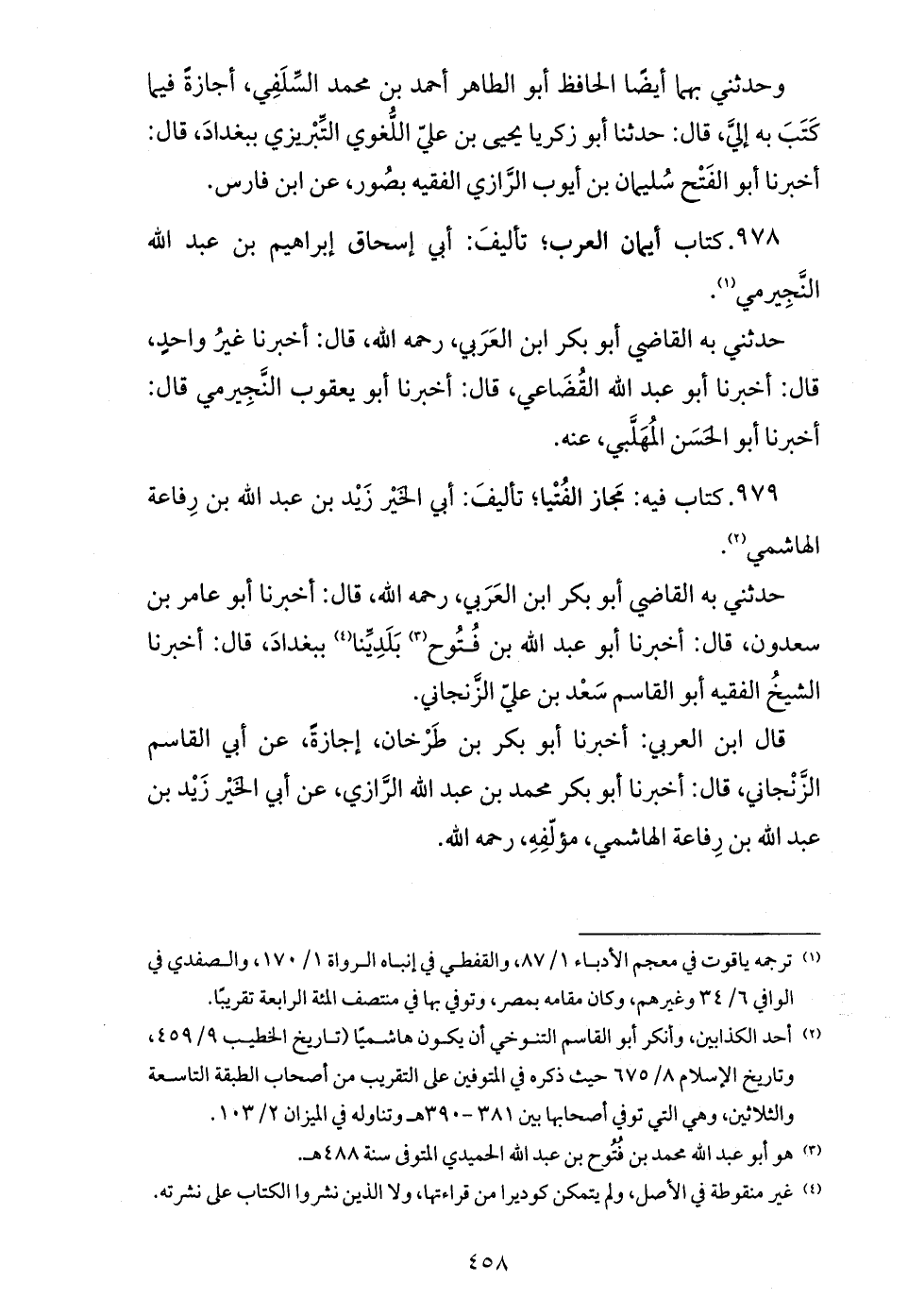 قال ابن العربي: أخبرنا أبو بكر بن طرخان، إجازة، عن أبي القاسم الزّنجاني، قال: أخبرنا أبو بكر محمد بن عبد الله الرّازي، عن أبي الخير زيد بن عبد الله بن رفاعة الهاشمي، مؤلّفه، رحمه الله.