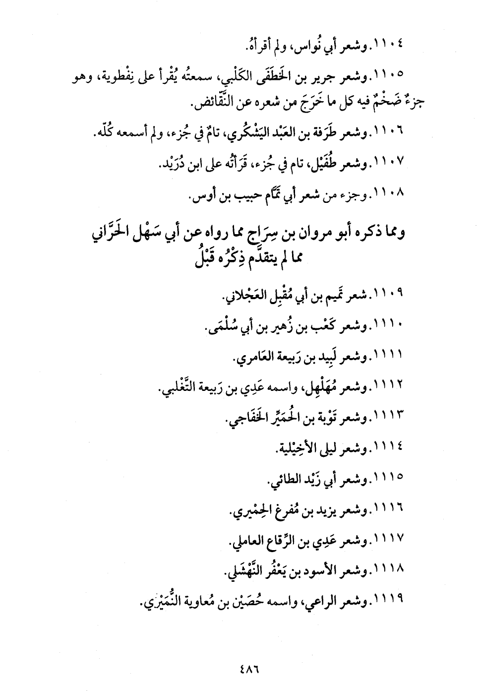1106. وشعر طرفة بن العبد اليشكري، تام في جزء،