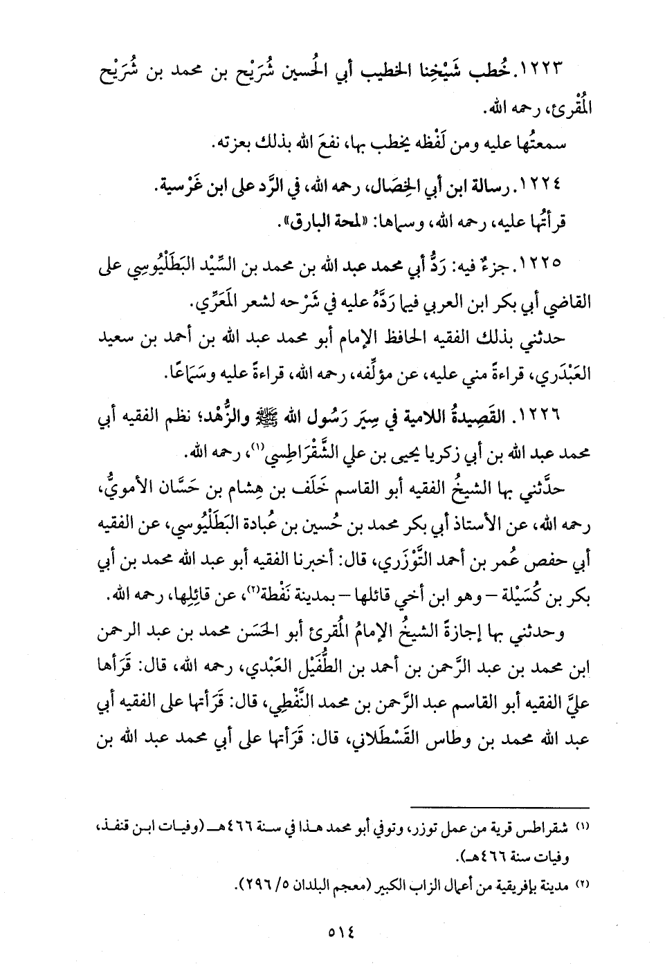 (¬1) شقراطس قرية من عمل توزر، وتوفي أبو محمد هذا في سنة 466 هـ (وفيات ابن قنفذ، وفيات سنة 466 هـ).