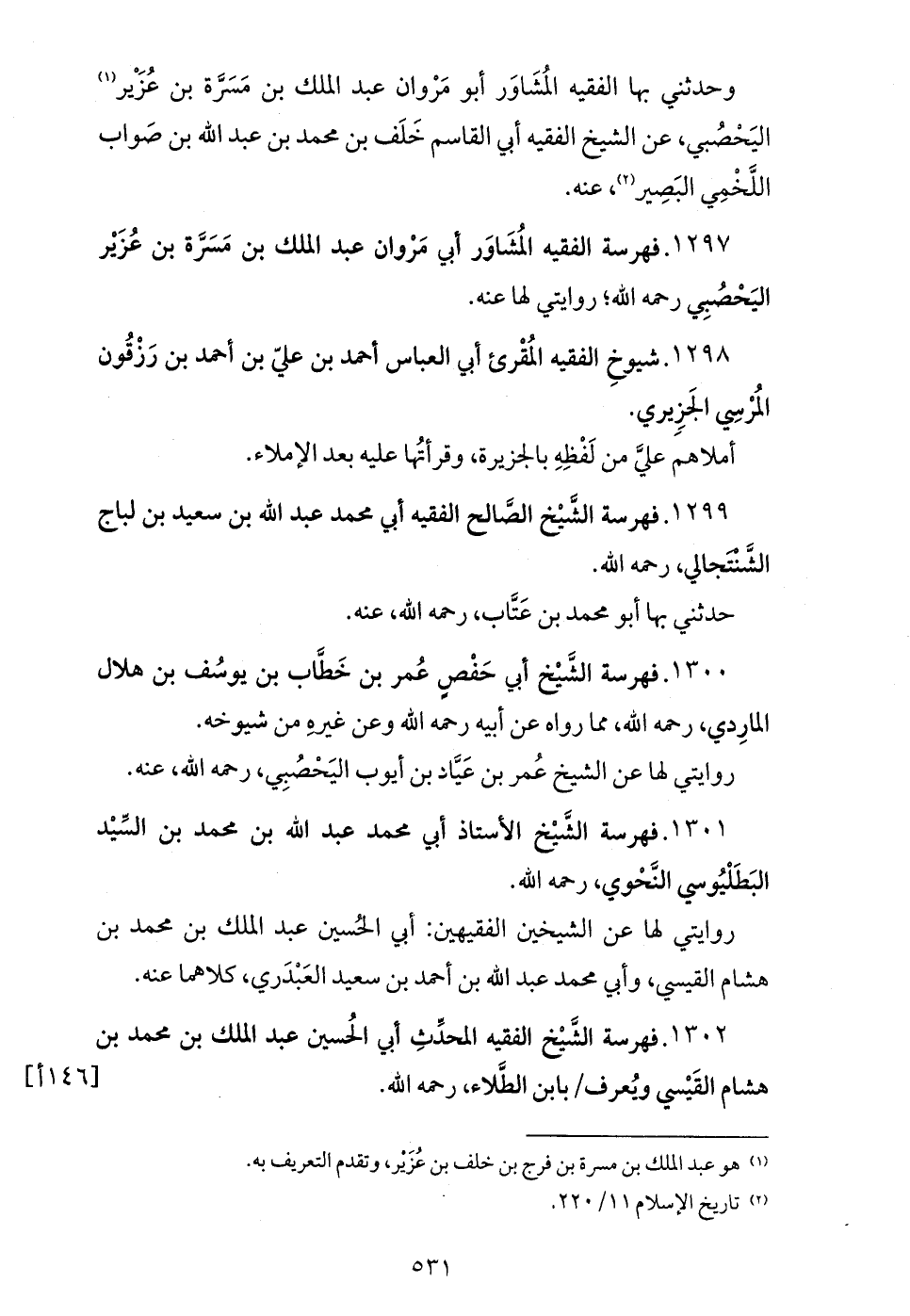 1297. فهرسة الفقيه المشاور أبي مروان عبد الملك بن مسرّة بن عزير اليحصبي رحمه الله؛
