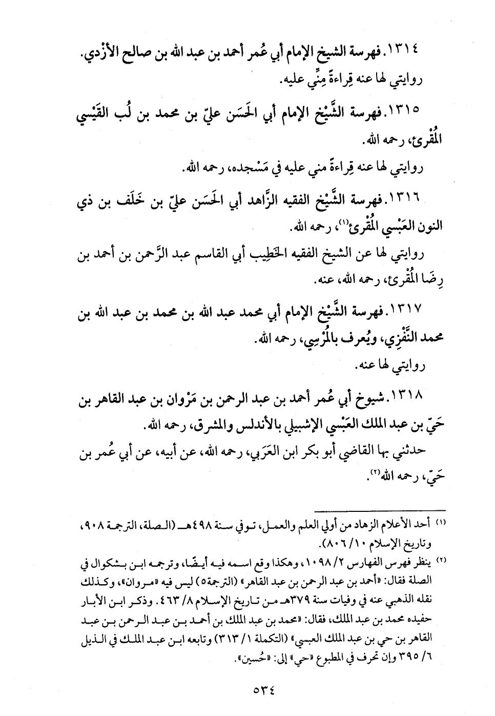 1318. شيوخ أبي عمر أحمد بن عبد الرحمن بن مروان بن عبد القاهر بن حيّ بن عبد الملك العبسي الإشبيلي بالأندلس والمشرق، رحمه الله.