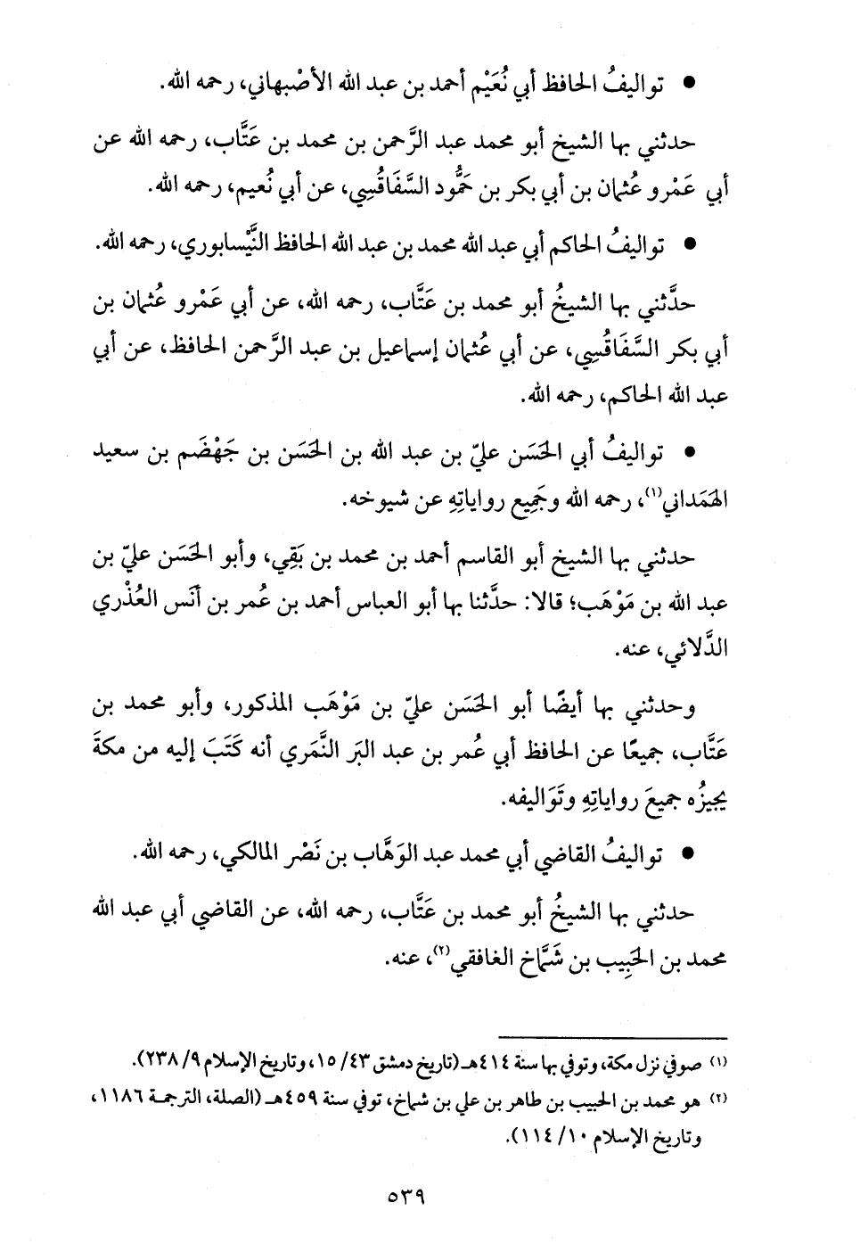 حدّثني بها الشيخ أبو محمد بن عتّاب، رحمه الله، عن أبي عمرو عثمان بن أبي بكر السّفاقسي، عن أبي عثمان إسماعيل بن عبد الرّحمن الحافظ، عن أبي عبد الله الحاكم، رحمه الله.