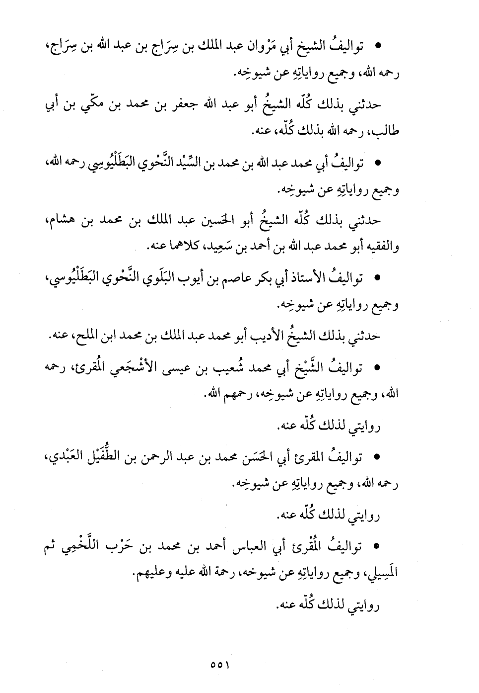 * تواليف أبي محمد عبد الله بن محمد بن السّيد النّحوي البطليوسي رحمه الله، وجميع رواياته عن شيوخه.