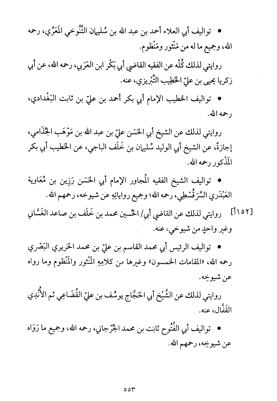 * تواليف الرئيس أبي محمد القاسم بن عليّ بن محمد الحريري البصري رحمه الله، «المقامات الخمسون» وغيرها من كلامه المنثور والمنظوم وما رواه عن شيوخه.