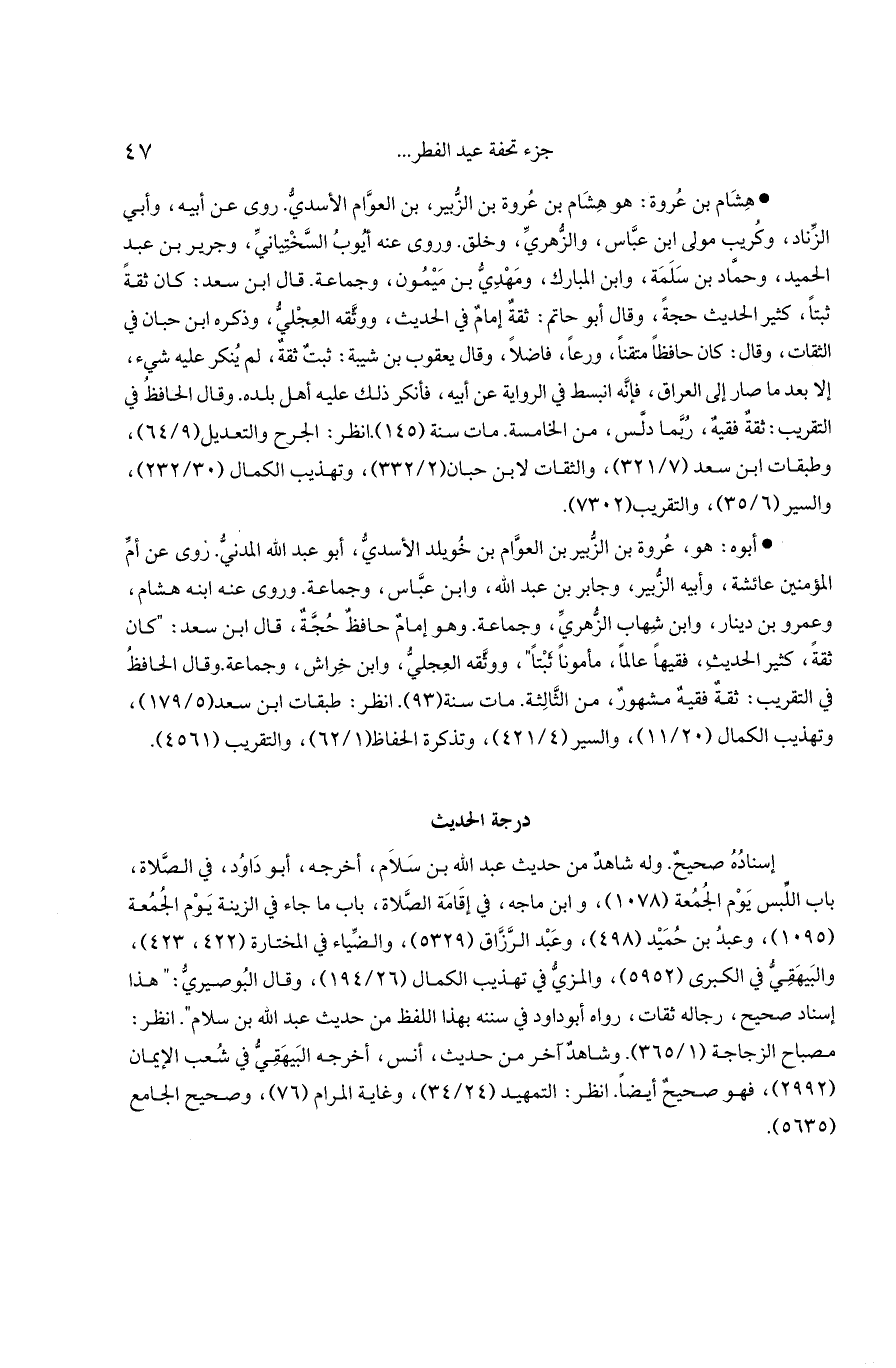 (498)، وعَبْد الرَّزَّاق (5329)، والضِّياء في المختارة (422، 423)، والبَيهَقِيُّ في الكبرى (5952)،والمزيُّ في تهذيب الكمال (26/ 194)،وقال البُوصيريُّ:" هذا إسناد صحيح، رجاله ثقات، رواه أبوداود في سننه بهذا اللفظ من حديث عبد الله بن سلام". انظر: مصباح الزجاجة (1/ 365).