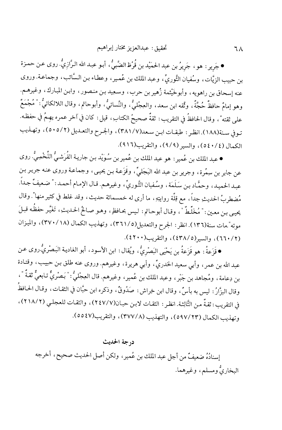 جَرِير: هو، جَرِيرُ بن عبد الحمَيْد بن قُرْظ الضَّبيُّ، أبو عبد الله الرَّازِيُّ.
