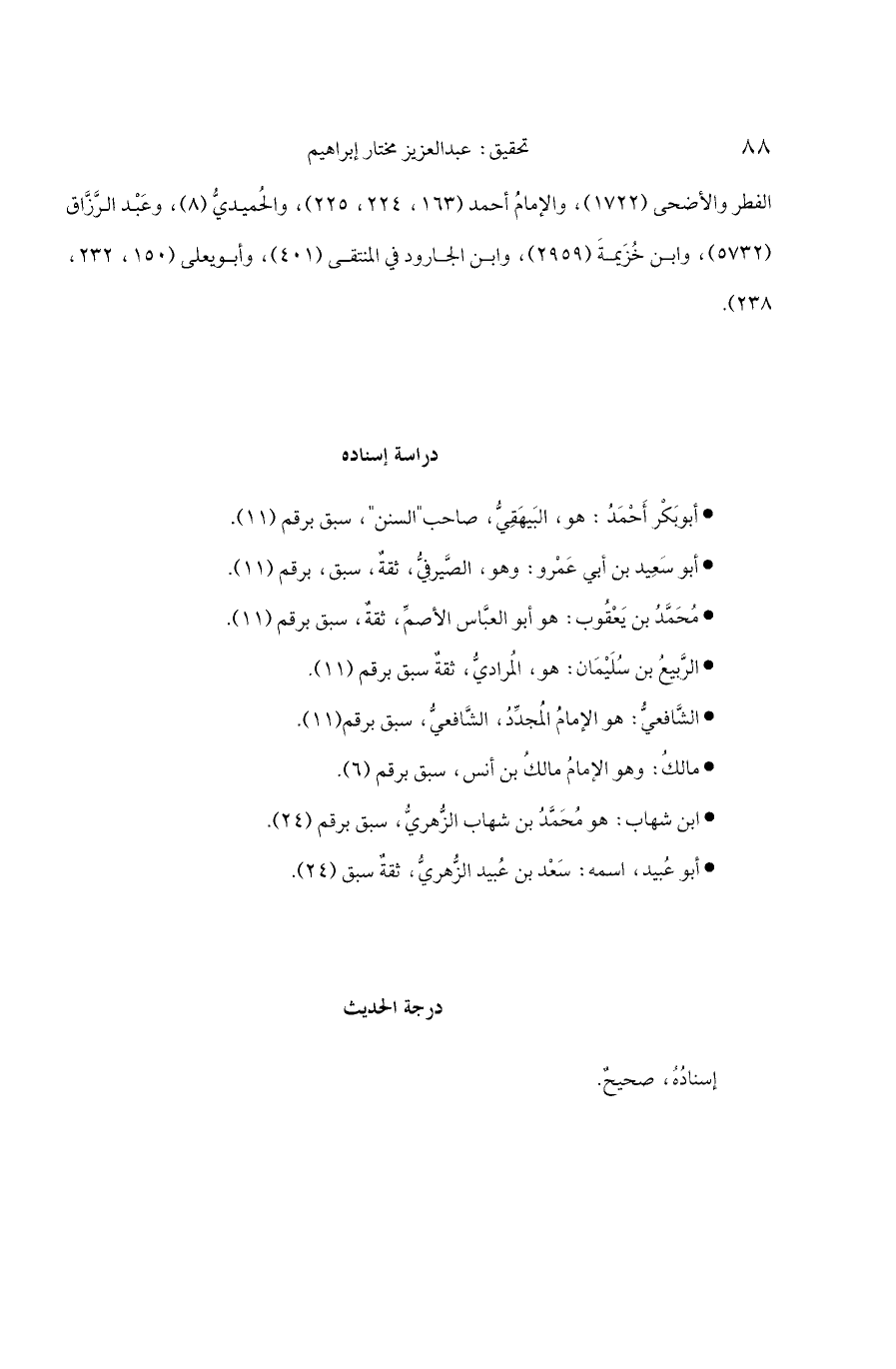 الفطر والأضحى (1722)،والإمامُ أحمد (163، 224، 225)،والحُميديُّ