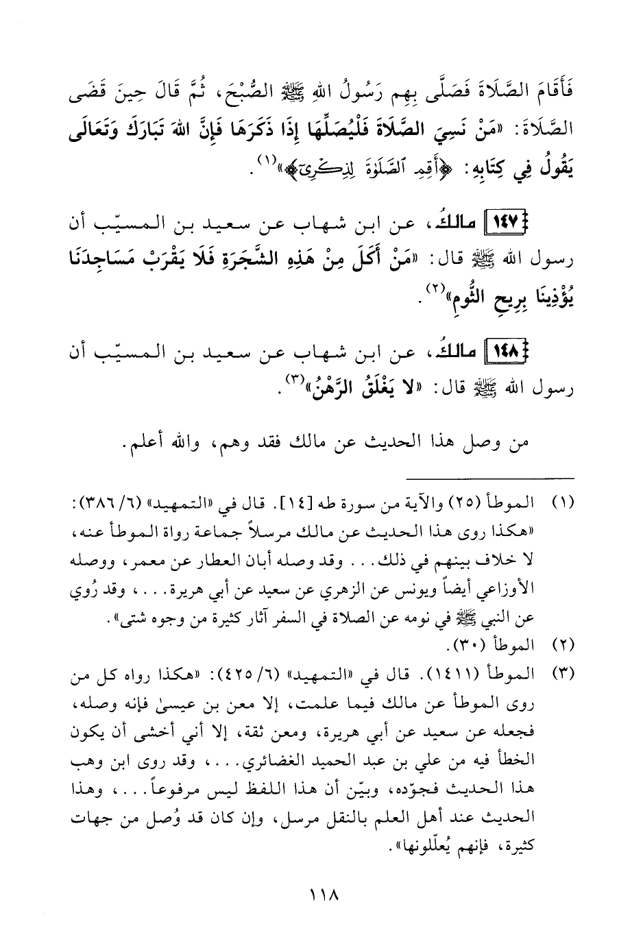 147 - مالكُ، عن ابن شهاب عن سعيد بن المسيّب أن رسول الله - صلى الله عليه وسلم - قال: "مَنْ أَكَلَ مِنْ هَذِهِ الشَّجَرَةِ فَلَا يَقْرَبْ مَسَاجِدَنَا يُؤْذِينَا بِرِيحِ الثُّومِ" (¬2).