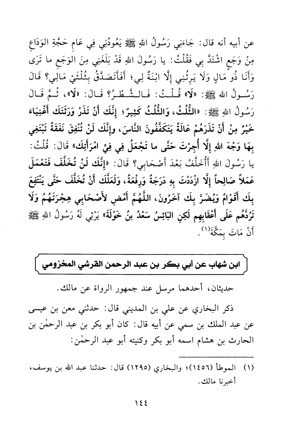 (¬1) الموطأ (1456)؛ والبخاريُّ (1295) قال: حدثنا عبد الله بن يوسف، أخبرنا مالك.