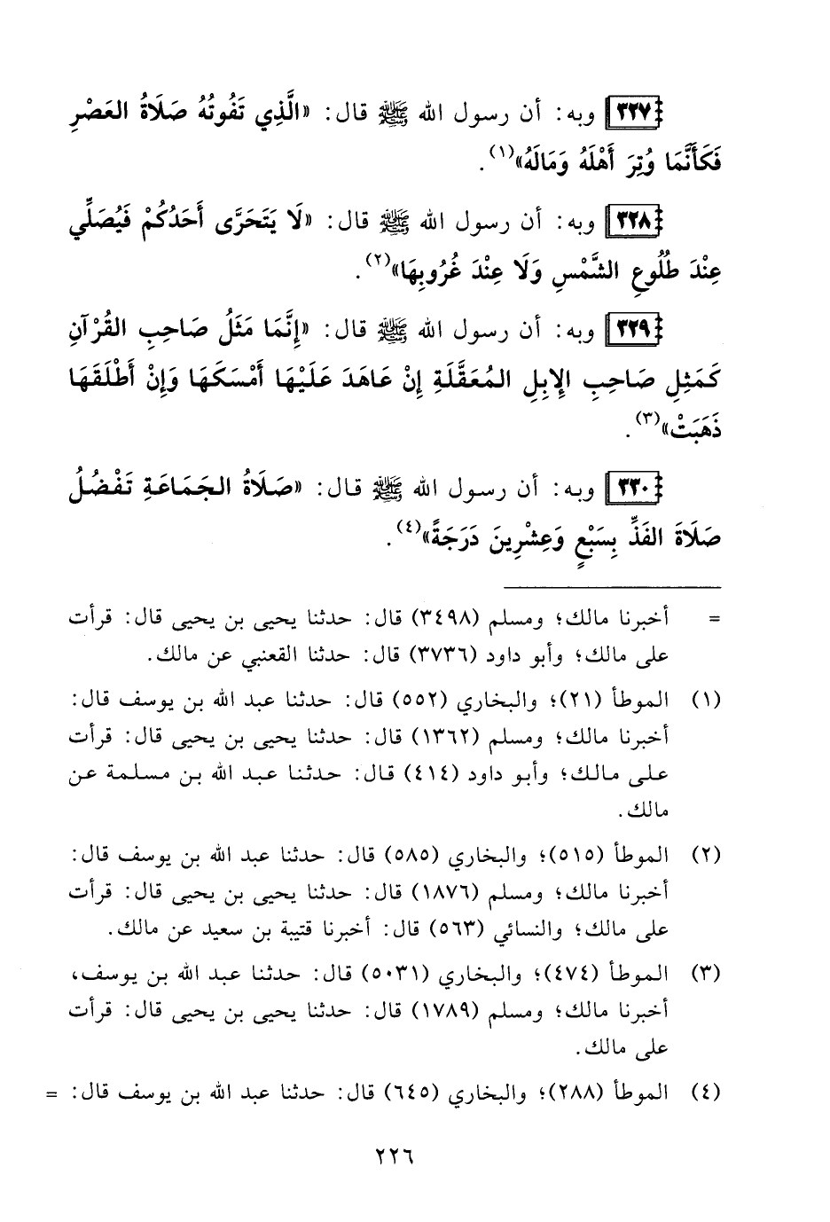 (¬1) الموطأ (21)؛ والبخاريُّ (552) قال: حدثنا عبد الله بن يوسف قال: أخبرنا مالك؛ ومسلمٌ (1362) قال: حدثنا يحيى بن يحيى قال: قرأت على مالك؛ وأبو داود (414) قال: حدثنا عبد الله بن مسلمة عن مالك.