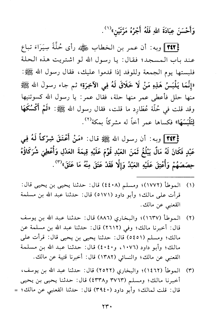 (¬3) الموطأ (1462)؛ والبخاريُّ (2522) قال: حدثنا عبد الله بن يوسف، أخبرنا مالك؛ ومسلمٌ (3763 و 4338) قال: حدثنا يحيى بن يحيى قال: قلت لمالك؛ وأبو داود (3940) قال: حدثنا القعنبي عن مالك؛ =