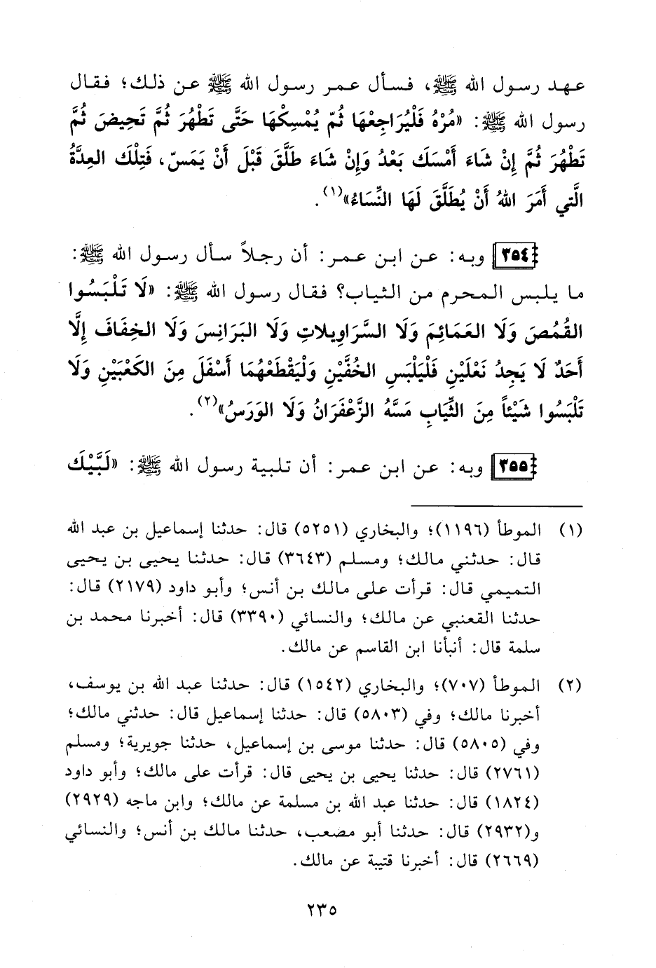 (¬2) الموطأ (707)؛ والبخاريُّ (1542) قال: حدثنا عبد الله بن يوسف، أخبرنا مالك؛ وفي (5803) قال: حدثنا إسماعيل قال: حدثني مالك، وفي (5805) قال: حدثنا موسى بن إسماعيل، حدثنا جويرية؛ ومسلمٌ (2761) قال: حدثنا يحيى بن يحيى قال: قرأت على مالك؛ وأبو داود (1824) قال: حدثنا عبد الله بن مسلمة عن مالك؛ وابن ماجه (2929) و (2932) قال: حدثنا أبو مصعب، حدثنا مالك بن أنس؛ والنسائيُّ (2669) قال: أخبرنا قتيبة عن مالك.