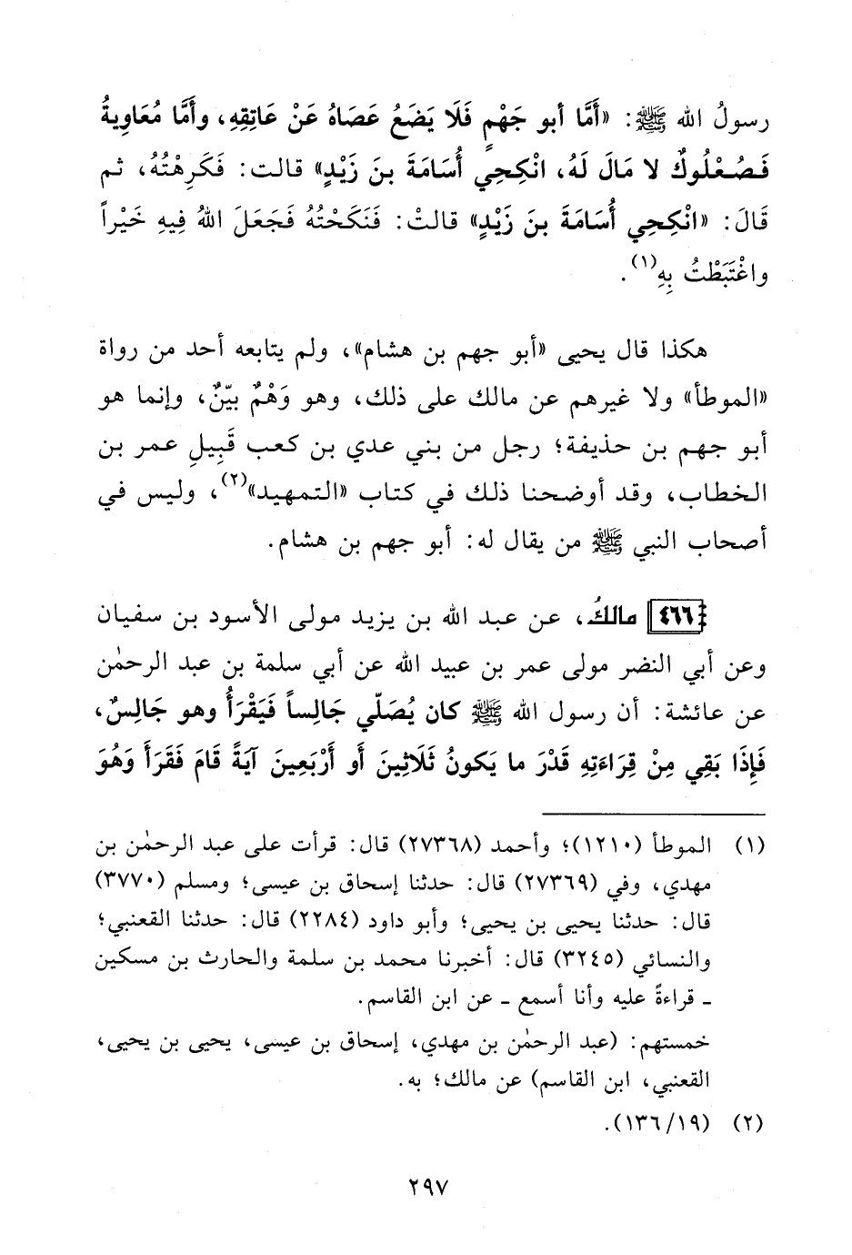 (¬1) الموطأ (1210)؛ وأحمدُ (27368) قال: قرأت على عبد الرحمن بن مهدي، وفي (27369) قال: حدثنا إسحاق بن عيسى، ومسلمٌ (3770) قال: حدثنا يحيى بن يحيى؛ وأبو داود (2284) قال: حدثنا القعنبي؛ والنسائيُّ (3245) قال: أخبرنا محمد بن سلمة والحارث بن مسكين -قراءةً عليه وأنا أسمع- عن ابن القاسم.