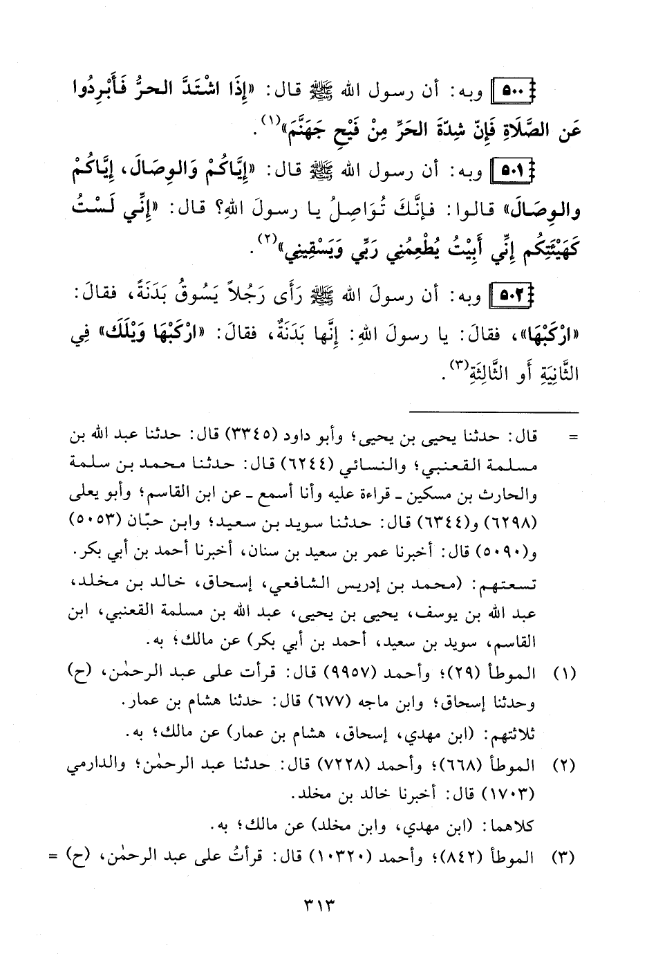 502 - وبه: أن رسولَ الله - صلى الله عليه وسلم - رأَى رَجُلًا يَسُوقُ بَدَنَةً، فقالَ: "ارْكَبْهَا"، فقالَ: يا رسولَ اللهِ: إِنَّها بَدَنَةٌ، فقالَ: "ارْكبْهَا وَيْلَكَ" فِي الثَّانِيَةِ أَو الثَّالِثَةِ (¬3).