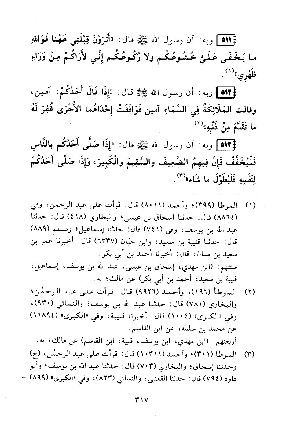 (¬3) الموطأ (301)؛ وأحمدُ (10311) قال: قرأت على عبد الرحمن، (ح) وحدثنا إسحاق؛ والبخاريُّ (703) قال: حدثنا عبد الله بن يوسف؛ وأبو داود (794) قال: حدثنا القعنبي؛ والنسائيُّ (823)، وفي "الكبرى" (899) =