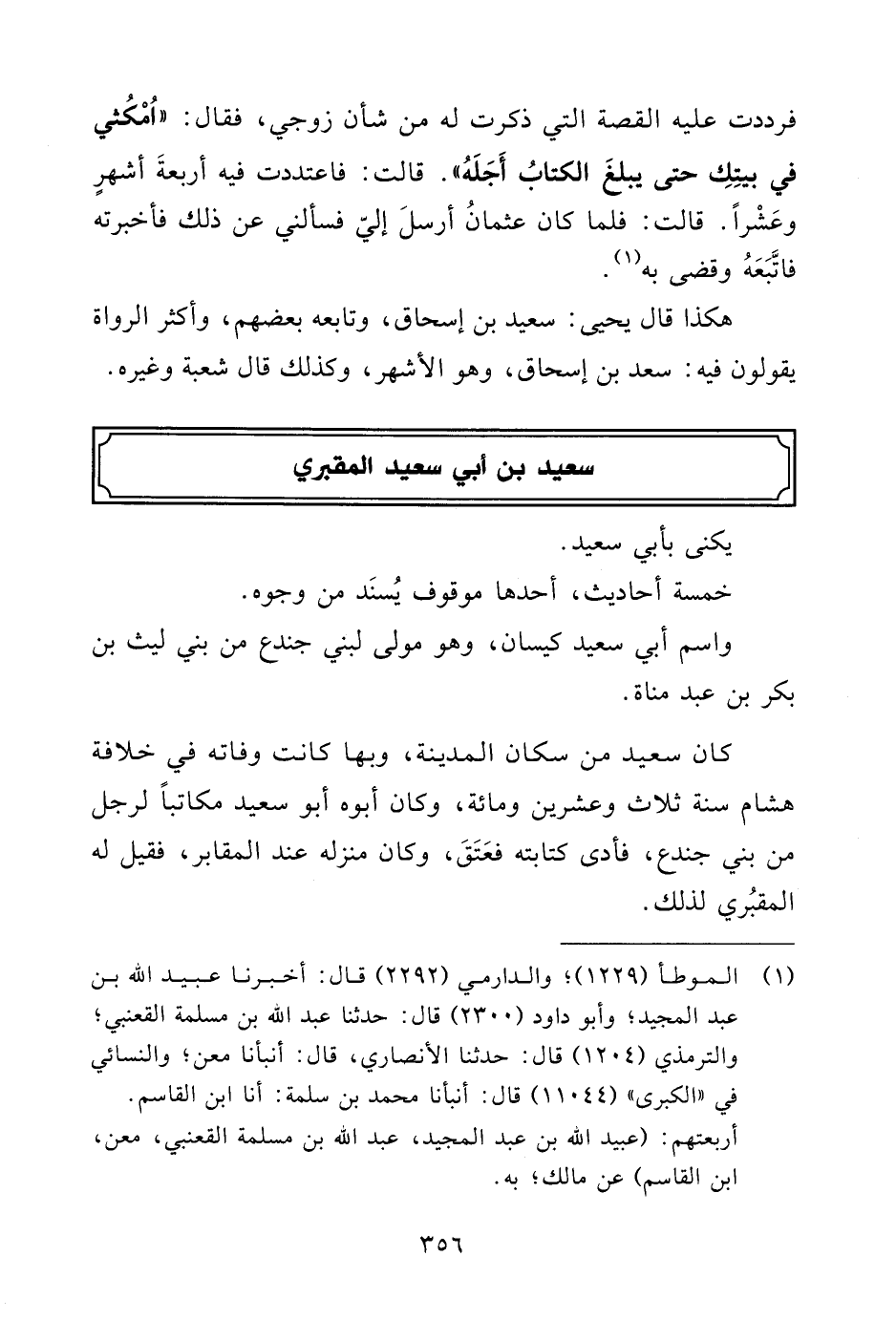 (¬1) الموطأ (1229)؛ والدارميُّ (2292) قال: أخبرنا عبيد الله بن عبد المجيد؛ وأبو داود (2300) قال: حدثنا عبد الله بن مسلمة القعنبي؛ والترمذيُّ (1204) قال: حدثنا الأنصاري، قال: أنبأنا معن؛ والنسائيُّ في "الكبرى" (11044) قال: أنبأنا محمد بن سلمة: أنا ابن القاسم.