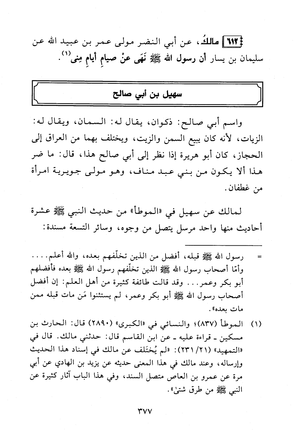 612 - مالكُ، عن أبي النضر مولى عمر بن عبيد الله عن سليمان بن يسار أن رسول الله - صلى الله عليه وسلم - نَهَى عنْ صيامِ أيامِ مِنى (¬1).