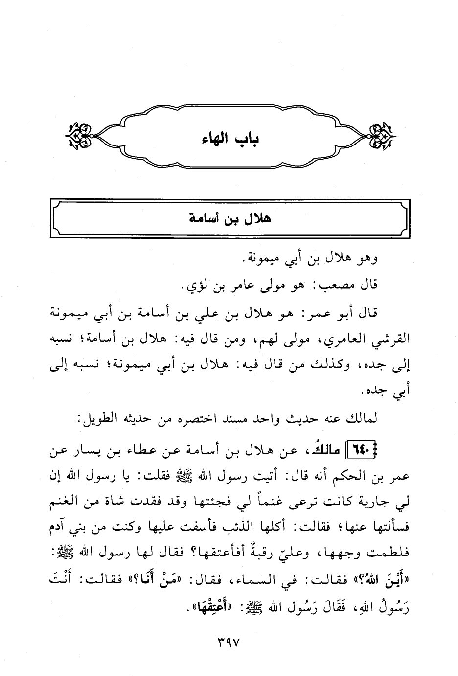 640 - مالكُ، عن هلال بن أسامة عن عطاء بن يسار عن عمر بن الحكم أنه قال: أتيت رسول الله - صلى الله عليه وسلم - فقلت: يا رسول الله إن لي جارية كانت ترعى غنمًا لي فجئتها وقد فقدت شاة من الغنم فسألتها عنها؛ فقالت: أكلها الذئب فأسفت عليها وكنت من بني آدم فلطمت وجهها، وعليّ رقبةٌ أفأعتقها؟ فقال لها رسول الله - صلى الله عليه وسلم -: "أَيْنَ اللهُ؟ " فقالت: في السماء، فقال: "مَنْ أَنَا؟ " فقالت: أَنْتَ رَسُولُ اللهِ، فَقَالَ رَسُول الله - صلى الله عليه وسلم -: "أَعْتِقْهَا".