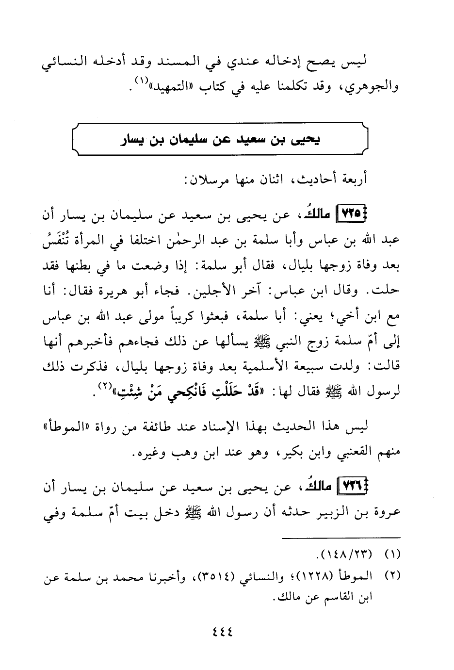 (¬2) الموطأ (1228)؛ والنسائيُّ (3514)، وأخبرنا محمد بن سلمه عن ابن القاسم عن مالك.