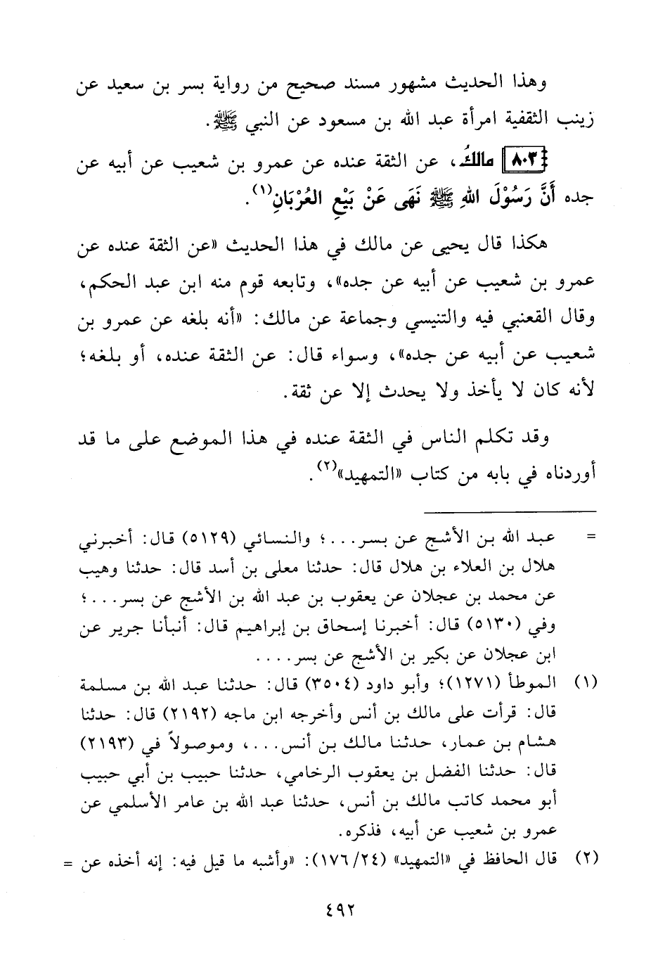 وقد تكلم الناس في الثقة عنده في هذا الموضع على ما قد أوردناه في بابه من كتاب "التمهيد" (¬2).