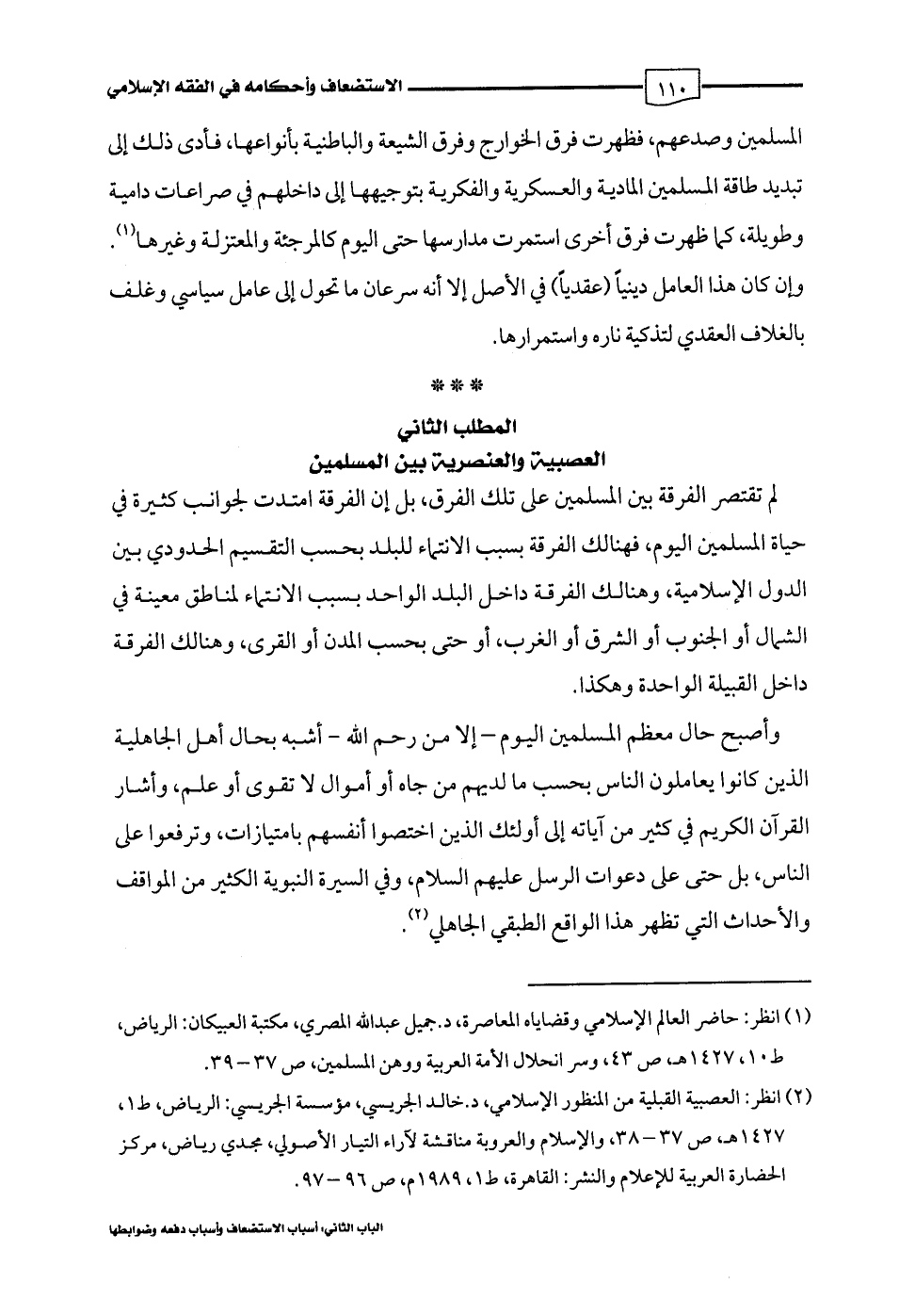 (¬2) انظر: العصبية القبلية من المنظور الإسلامي، د. خالد الجريسي، مؤسسة الجريسي: الرياض، ط 1، 1427 هـ، ص 37 - 38، والإسلام والعروبة مناقشة لآراء التيار الأصولي، مجدي رياض، مركز الحضارة العربية للإعلام والنشر: القاهرة، ط 1، 1989 م، ص 96 - 97.
