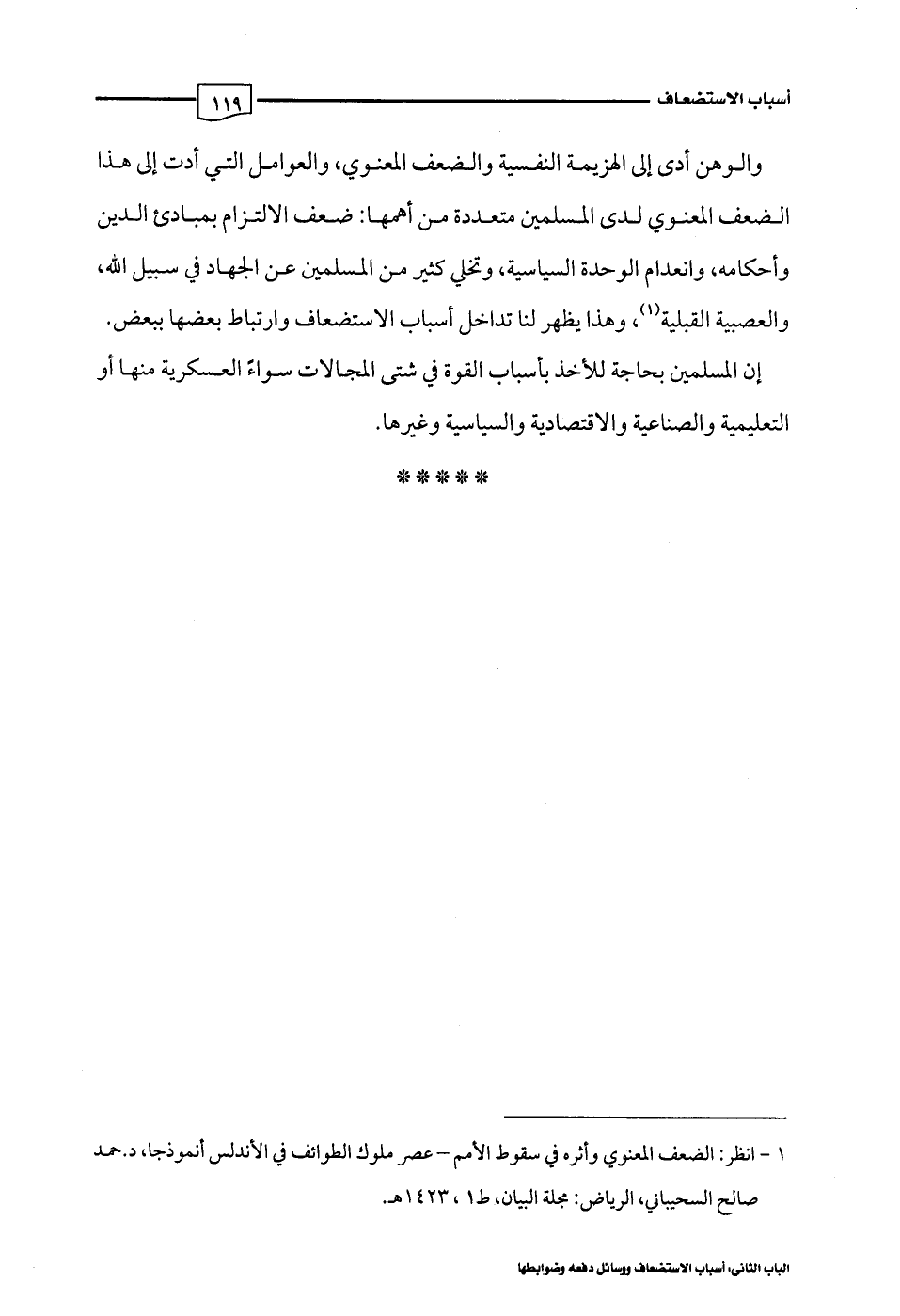 (¬1) انظر: الضعف المعنوي وأثره في سقوط الأمم - عصر ملوك الطوائف في الأندلس أنموذجا، د. حمد صالح السحيباني، الرياض: مجلة البيان، ط 1، 1423 هـ.