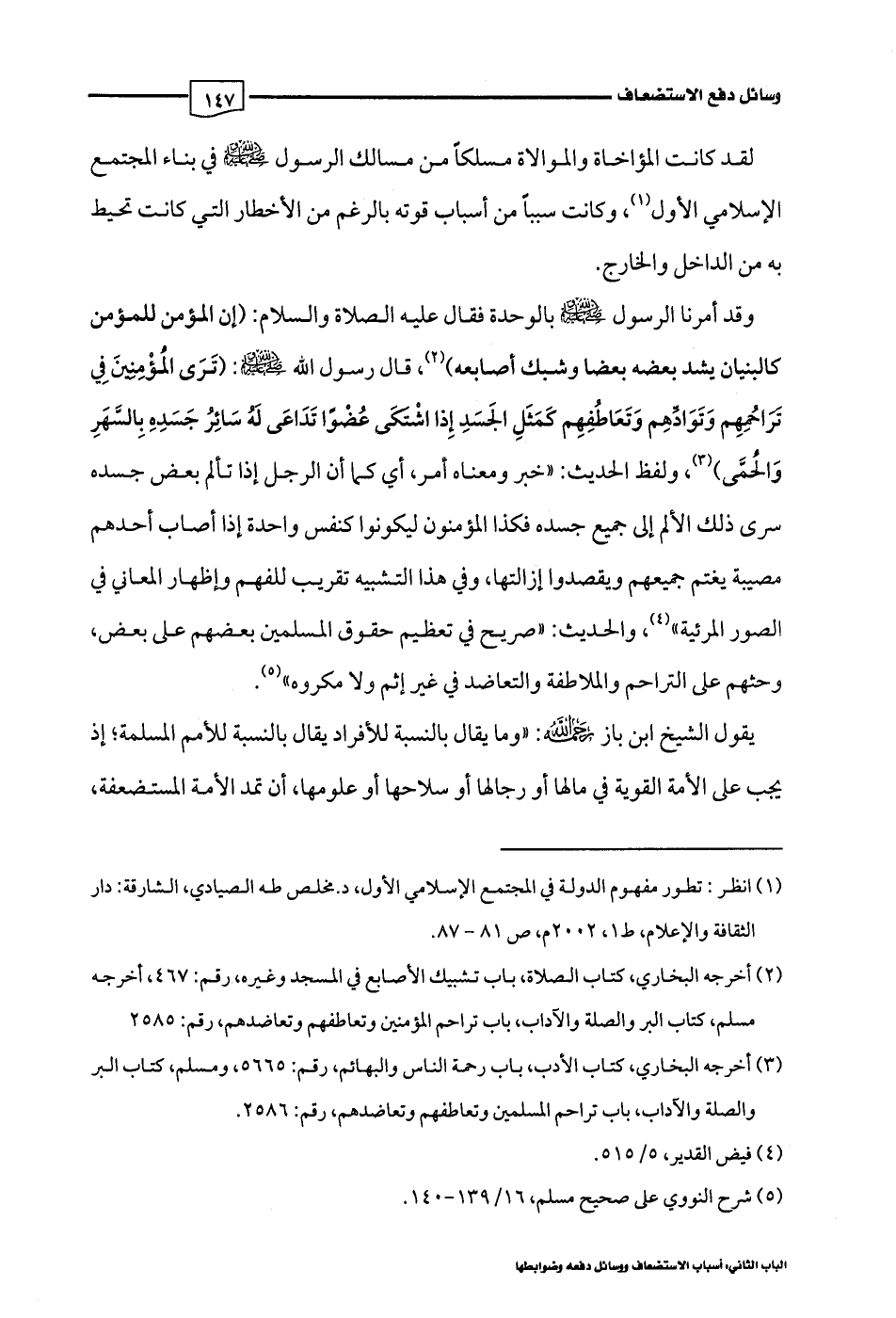 (¬2) أخرجه البخاري، كتاب الصلاة، باب تشبيك الأصابع في المسجد وغيره، رقم: 467، أخرجه مسلم، كتاب البر والصلة والآداب، باب تراحم المؤمنين وتعاطفهم وتعاضدهم، رقم: 2585