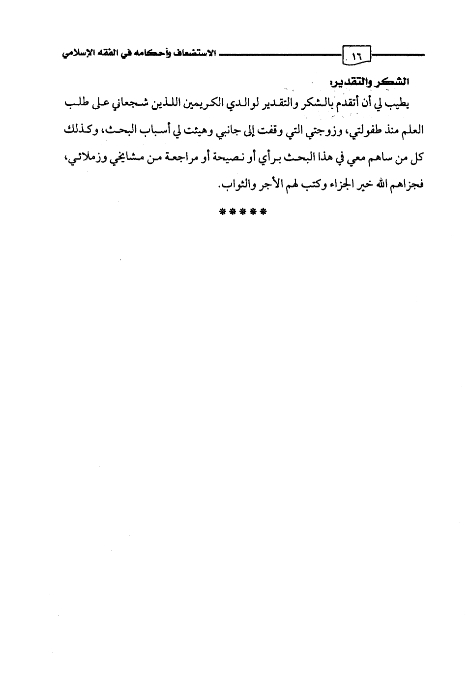 يطيب لي أن أتقدم بالشكر والتقدير لوالدي الكريمين اللذين شجعاني على طلب العلم منذ طفولتي، وزوجتي التي وقفت إلى جانبي وهيئت لي أسباب البحث، وكذلك كل من ساهم معي في هذا البحث برأي أو نصيحة أو مراجعة من مشايخي وزملائي، فجزاهم اللَّه خير الجزاء وكتب لهم الأجر والثواب.