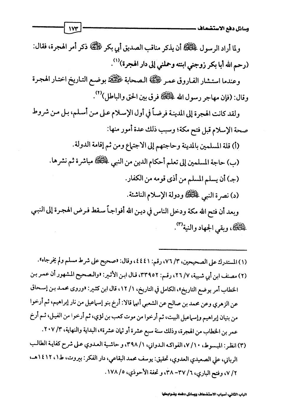 (¬3) انظر: المبسوط، 10/ 7، الفواكه الدواني، 1/ 398، وحاشية العدوي على شرح كفاية الطالب الرباني، علي الصعيدي العدوي، تحقيق: يوسف محمد البقاعي، دار الفكر: بيروت، ط 1، 1412 هـ، 2/ 7، وفتح الباري، 6/ 37 - 38، وتحفة الأحوذي، 5/ 178.