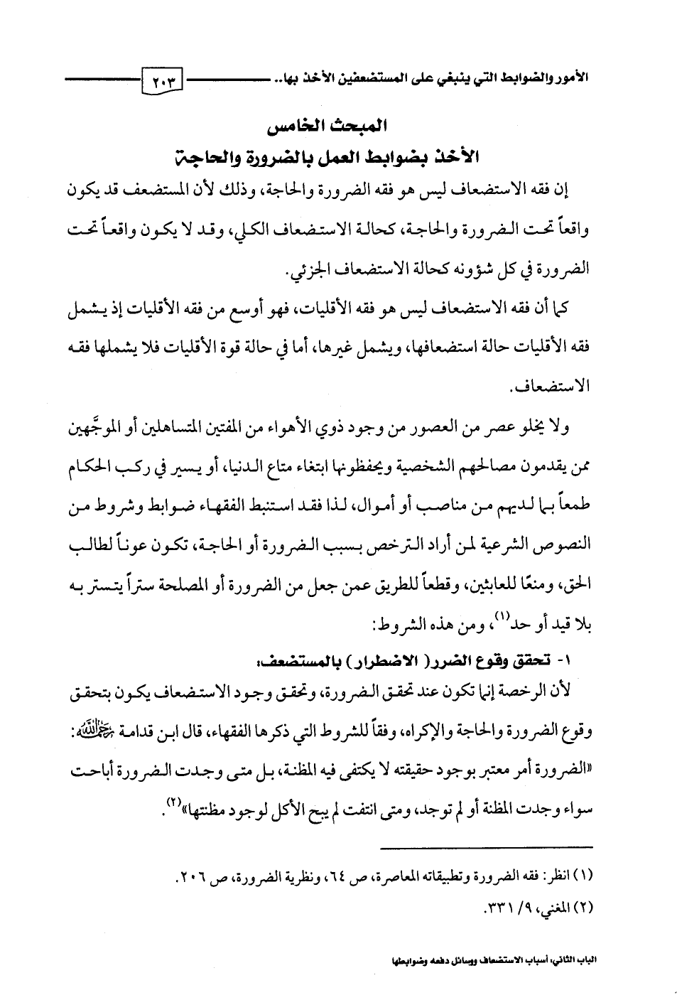 المبحث الخامس الأخذ بضوابط العمل بالضرورة والحاجة