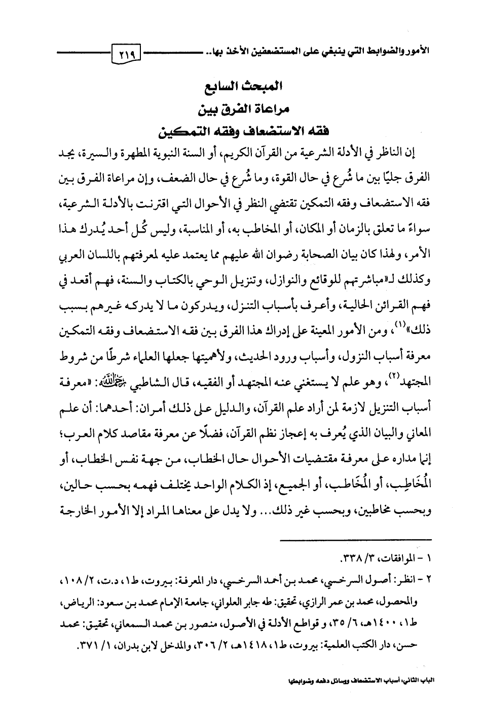 المبحث السابع مراعاة الفرق بين فقه الاستضعاف وفقه التمكين
