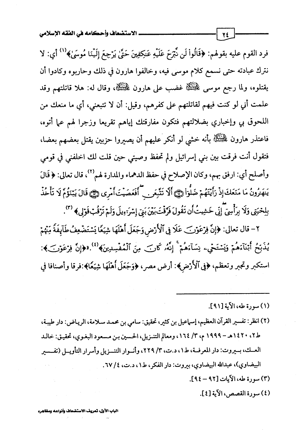 2 - قال تعالى: {إِنَّ فِرْعَوْنَ عَلَا فِي الْأَرْضِ وَجَعَلَ أَهْلَهَا شِيَعًا يَسْتَضْعِفُ طَائِفَةً مِنْهُمْ يُذَبِّحُ أَبْنَاءَهُمْ وَيَسْتَحْيِي نِسَاءَهُمْ إِنَّهُ كَانَ مِنَ الْمُفْسِدِينَ} (¬4). " {إِنَّ فِرْعَوْنَ}: استكبر وتجبر وتعظم، {فِي الْأَرْضِ}: أرض مصر، {وَجَعَلَ أَهْلَهَا شِيَعًا}: فرقا وأصنافا في