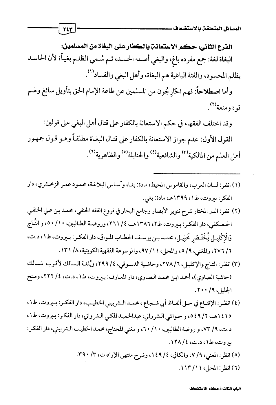 الفرع الثانى: حكم الاستعانة بالكفار على البغاة من المسلمين: