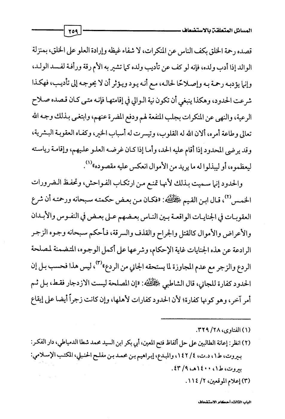 (¬2) انظر: إعانة الطالبين على حل ألفاظ فتح المعين، أبي بكر ابن السيد محمد شطا الدمياطي، دار الفكر: بيروت، ط 1، د. ت، 4/ 142، والمبدع، إبراهيم بن محمد بن مفلح الحنبلي، المكتب الإسلامي: بيروت، ط 1، 1400 هـ، 9/ 43.