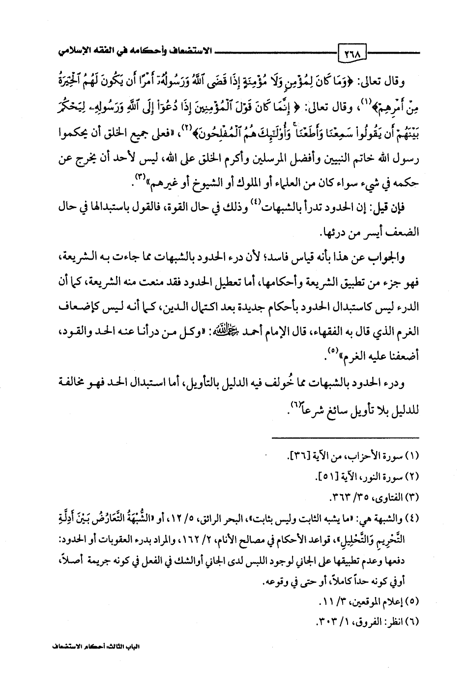 (¬4) والشبهة هي: "ما يشبه الثابت وليس بثابت"، البحر الرائق، 5/ 12، أو "الشُّبْهَةُ التَّعَارُضُ بَيْنَ أَدِلَّةِ التَّحْرِيمِ وَالتَّحْلِيلِ"، قواعد الأحكام في مصالح الأنام، 2/ 162، والمراد بدرء العقوبات أو الحدود: دفعها وعدم تطبيقها على الجاني لوجود اللبس لدى الجاني أو الشك في الفعل في كونه جريمة أصلًا, أو في كونه حدًا كاملًا، أو حتى في وقوعه.