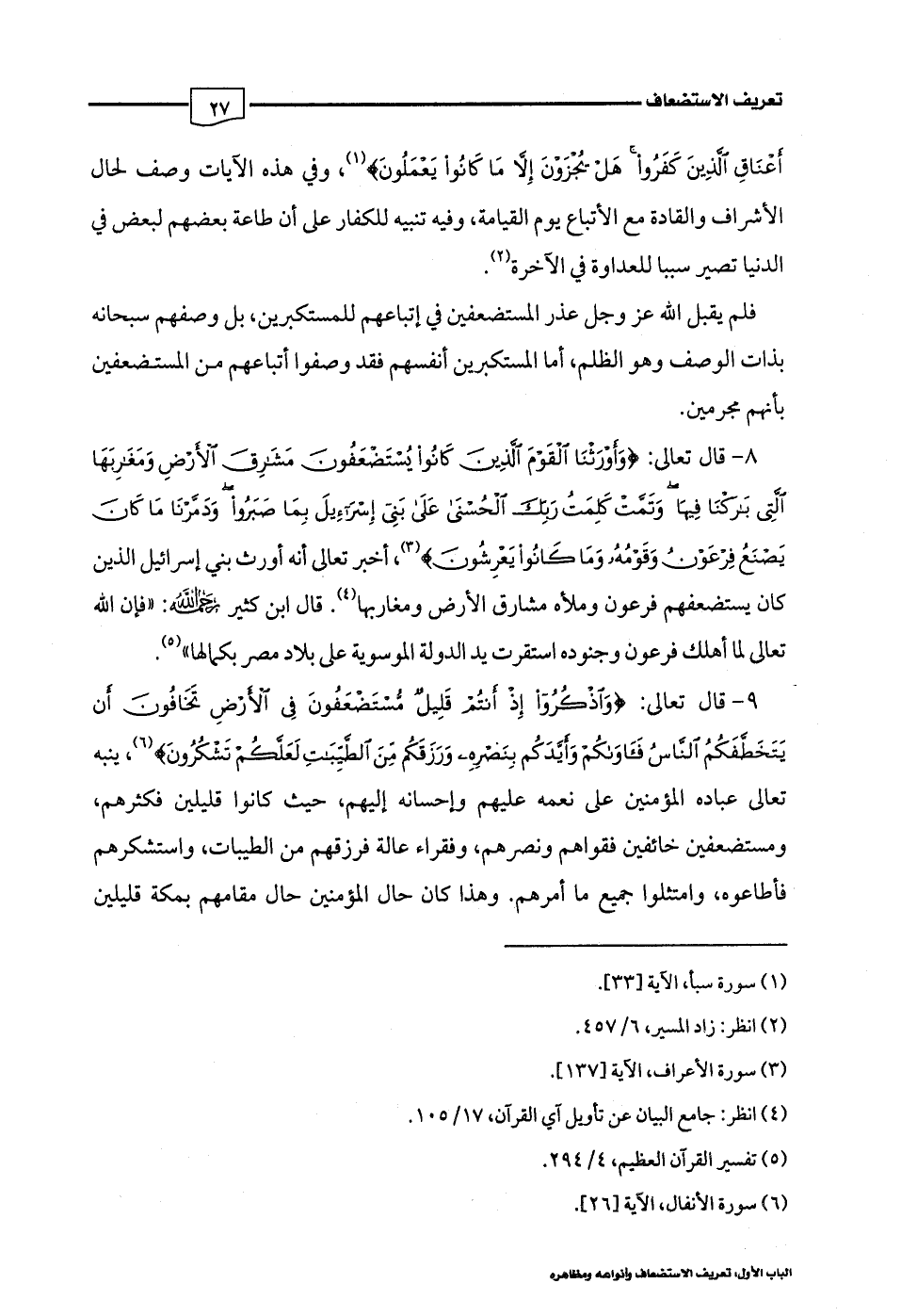 فلم يقبل اللَّه عز وجل عذر المستضعفين في إتباعهم للمستكبرين، بل وصفهم سبحانه بذات الوصف وهو الظلم، أما المستكبرين أنفسهم فقد وصفوا أتباعهم من المستضعفين بأنهم مجرمين.