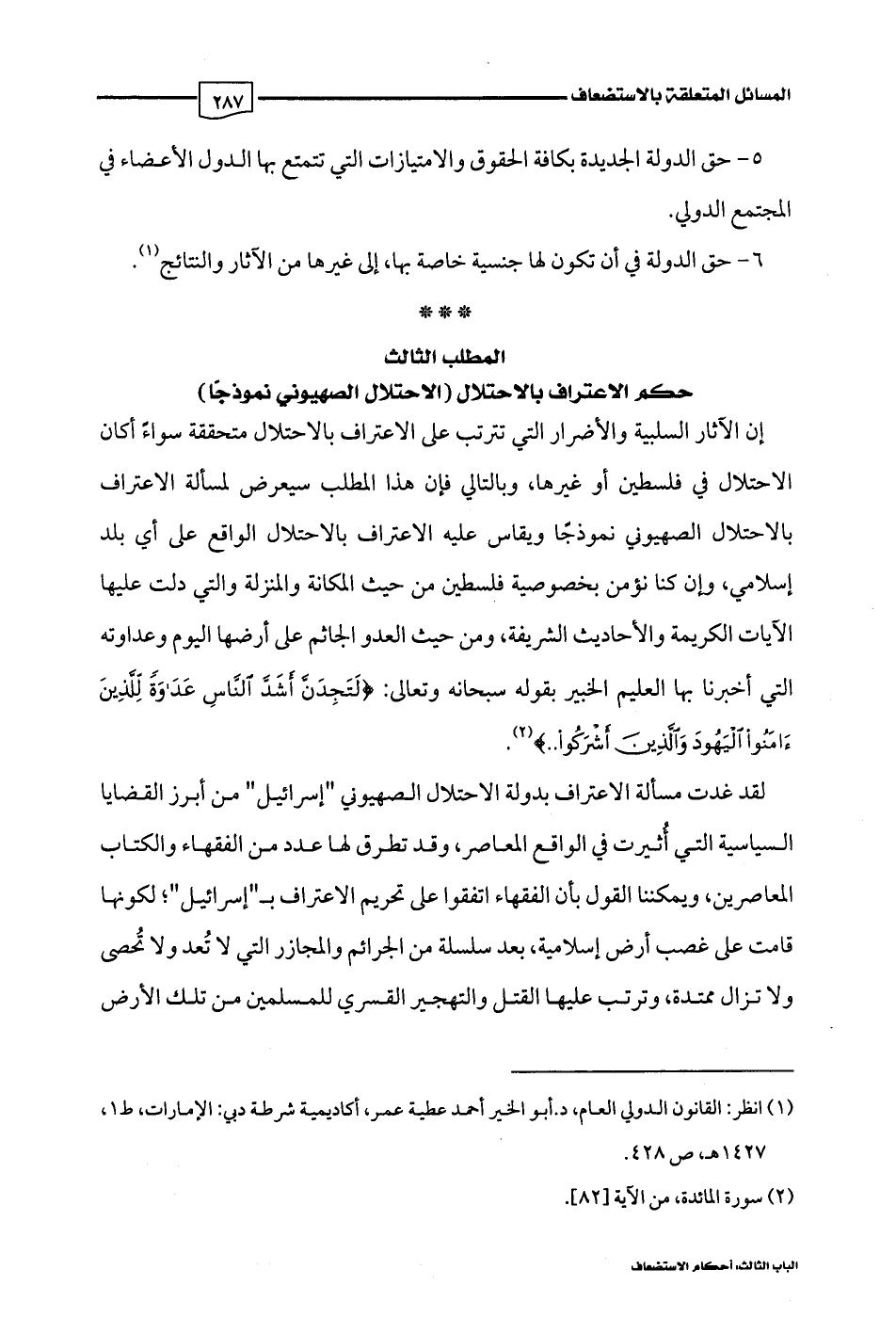 المطلب الثالث حكم الاعتراف بالاحتلال (الاحتلال الصهيونى نموذجًا)