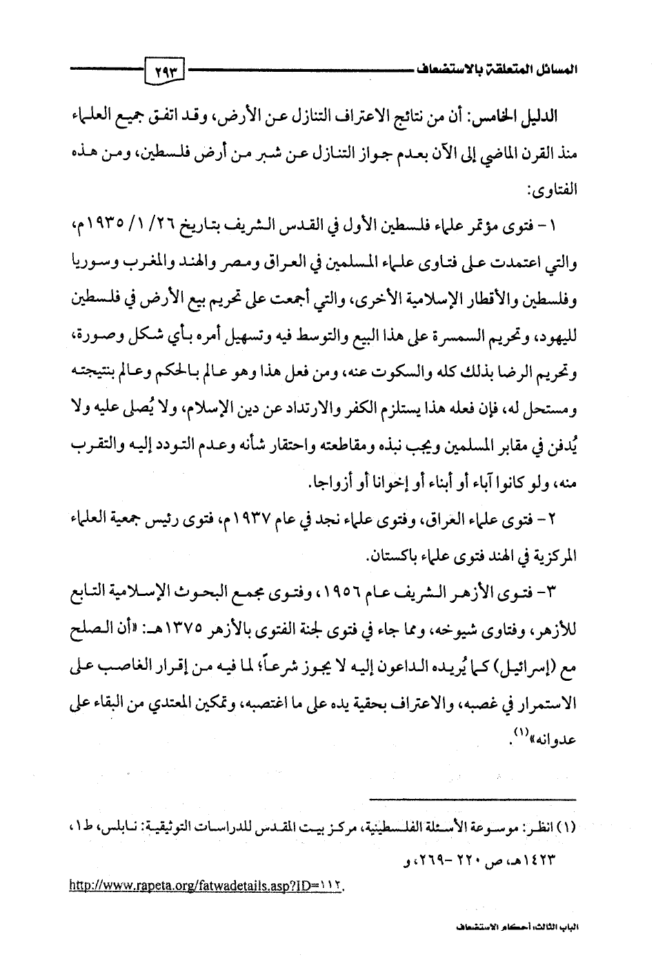 (¬1) انظر: موسوعة الأسئلة الفلسطينية، مركز بيت المقدس للدراسات التوثيقية: نابلس، ط 1، 1423 هـ، ص 220 - 269،