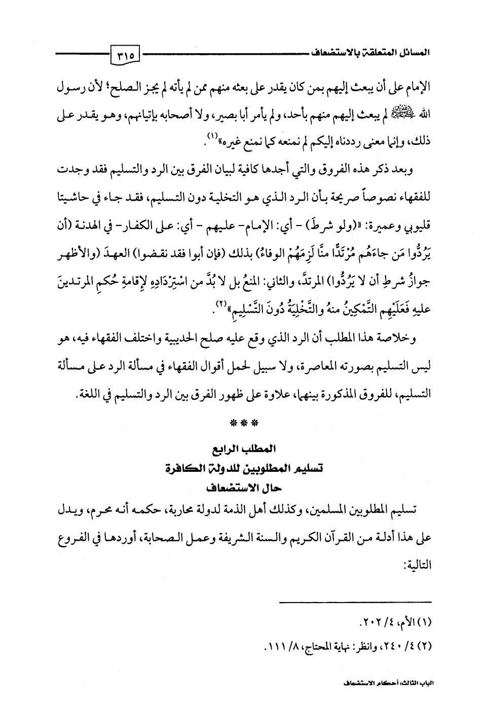 المطلب الرابع تسليم المطلوبين للدولة الكافرة حال الاستضعاف