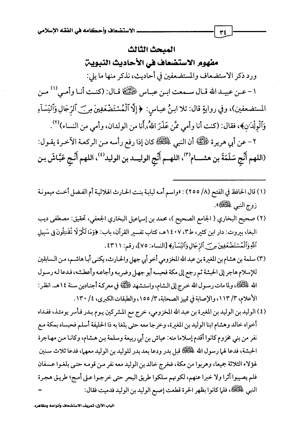 المبحث الثالث: مفهوم الاستضعاف في الأحاديث النبوية