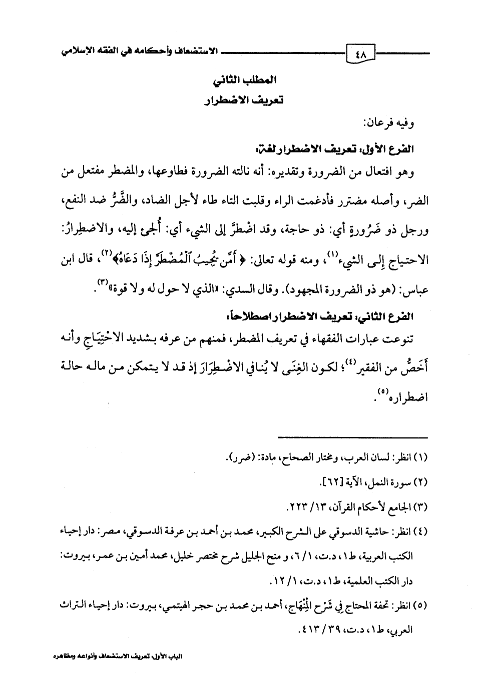 الفرع الثاني: تعريف الاضطرار اصطلاحًا: