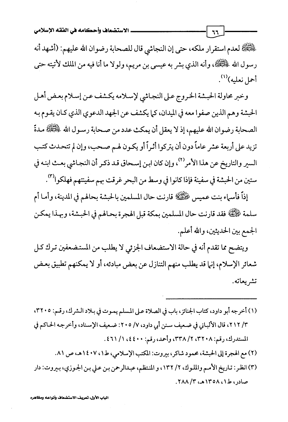 -صلى اللَّه عليه وسلم- لعدم استقرار ملكه، حتى إن النجاشي قال للصحابة رضوان اللَّه عليهم: (أشهد أنه رسول اللَّه -صلى اللَّه عليه وسلم-، وأنه الذي بشر به عيسى بن مريم، ولولا ما أنا فيه من الملك لأتيته حتى أحمل نعليه) (¬1).