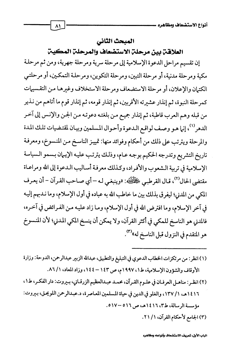 المبحث الثاني: العلاقة بين مرحلة الاستضعاف والمرحلة المكية