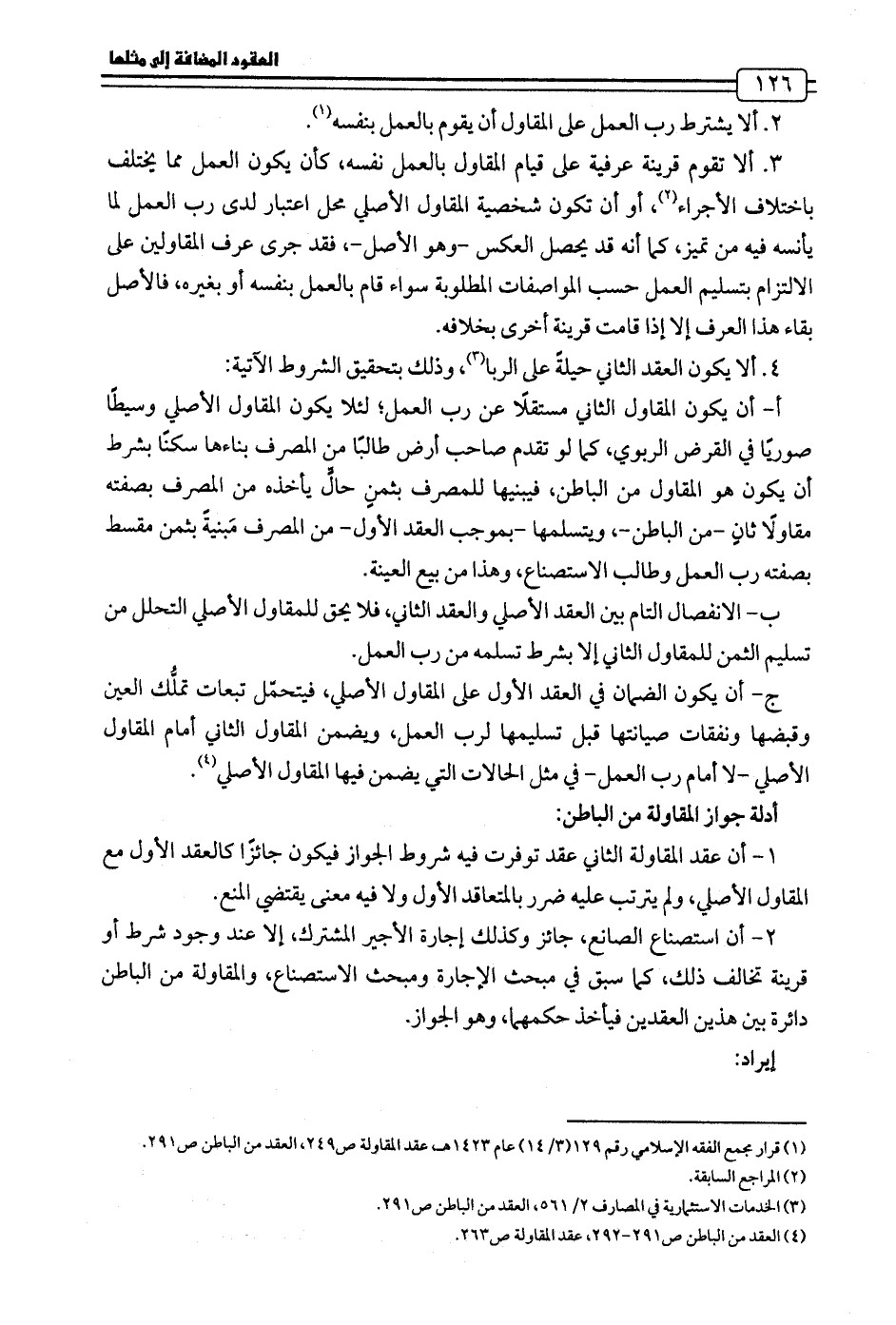 (¬1) قرار مجمع الفقه الإسلامي رقم 129 (3/ 14) عام 1423 هـ، عقد المقاولة ص 249، العقد من الباطن ص 291.