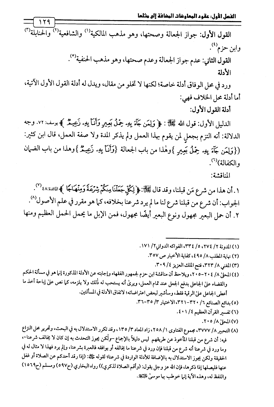 (¬4) المحلى 8/ 204 - 205، ويلاحظ أن مناقشة ابن حزم لجمهور الفقهاء وإجابته عن الأدلة المذكورة إنما هو في مسألة الحكم والقضاء على الجاعل بدفع الجعل عند تمام العمل، ويرى أنه يستحب له ذلك ولا يلزمه، كما نص على إباحة أخذ ما أعطى الجاعل على الرقية فقط، وسأشير لبعض اعتراضاته؛ لاتفاق الأدلة في المسألتين.