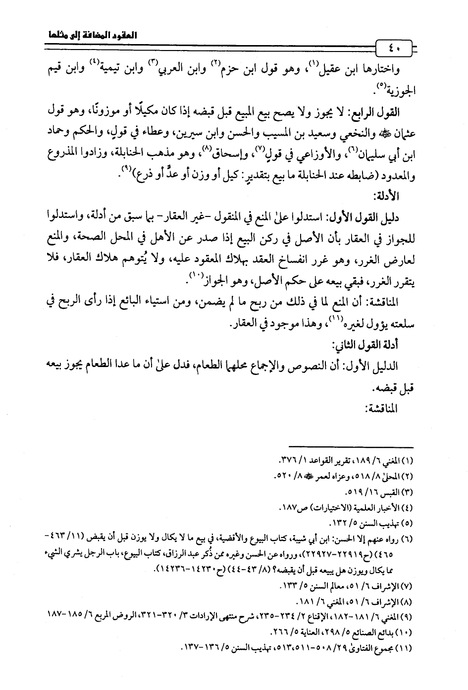 المناقشة: أن المنع لما في ذلك من ربح ما لم يضمن، ومن استياء البائع إذا رأى الربح في سلعته يؤول لغيره (¬11)، وهذا موجود في العقار.